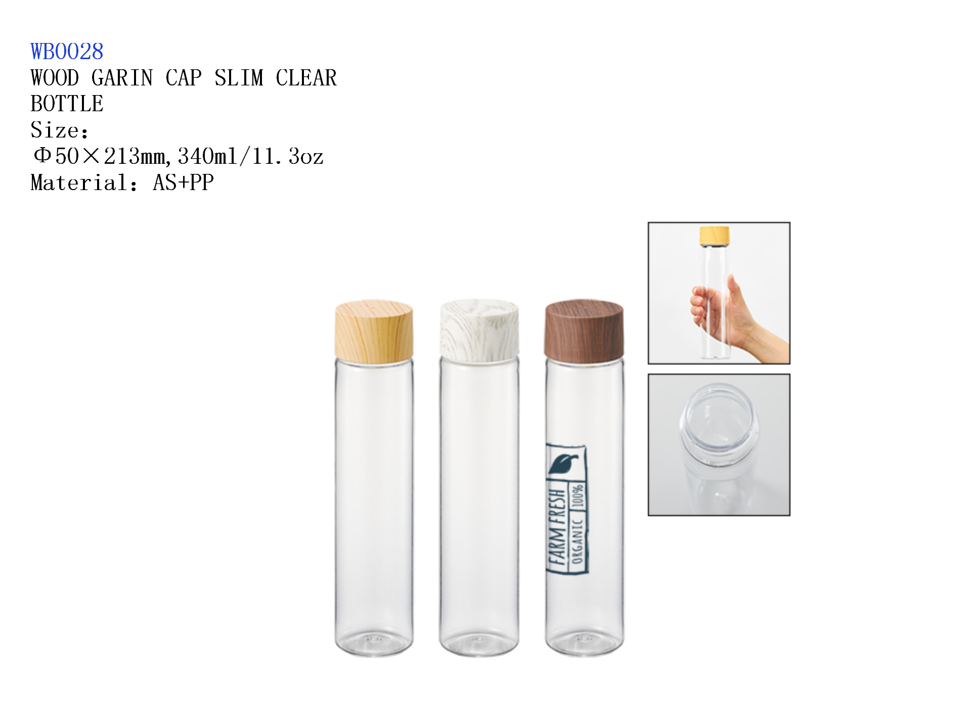 WOOD GARIN CAP SLIM CLEAR BOTTLE