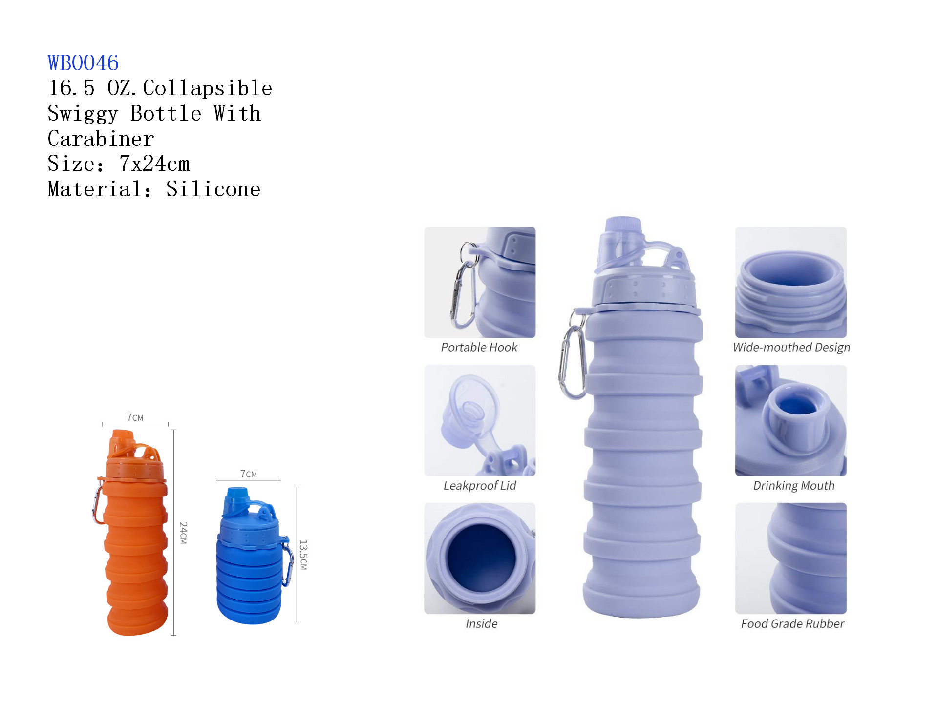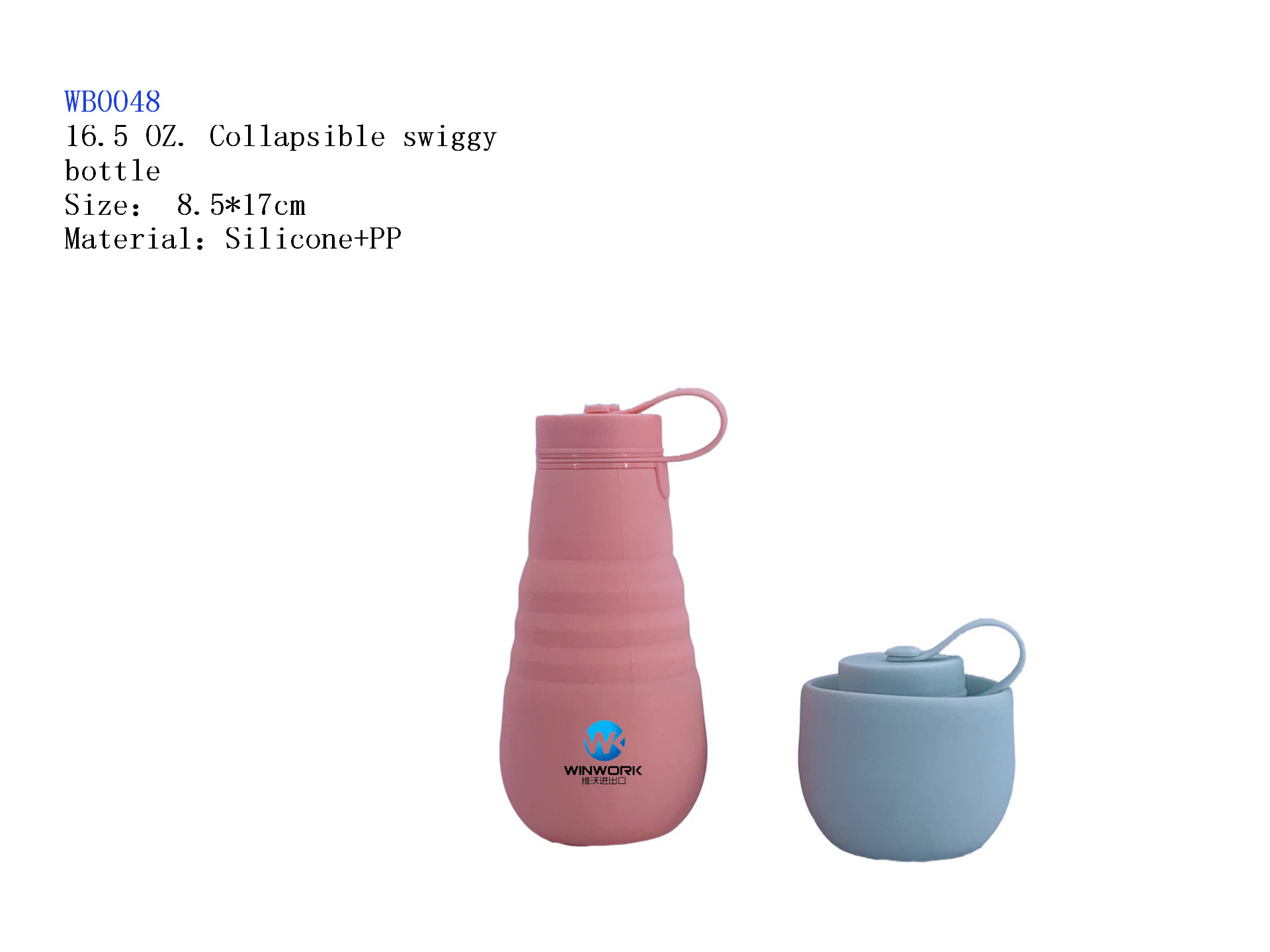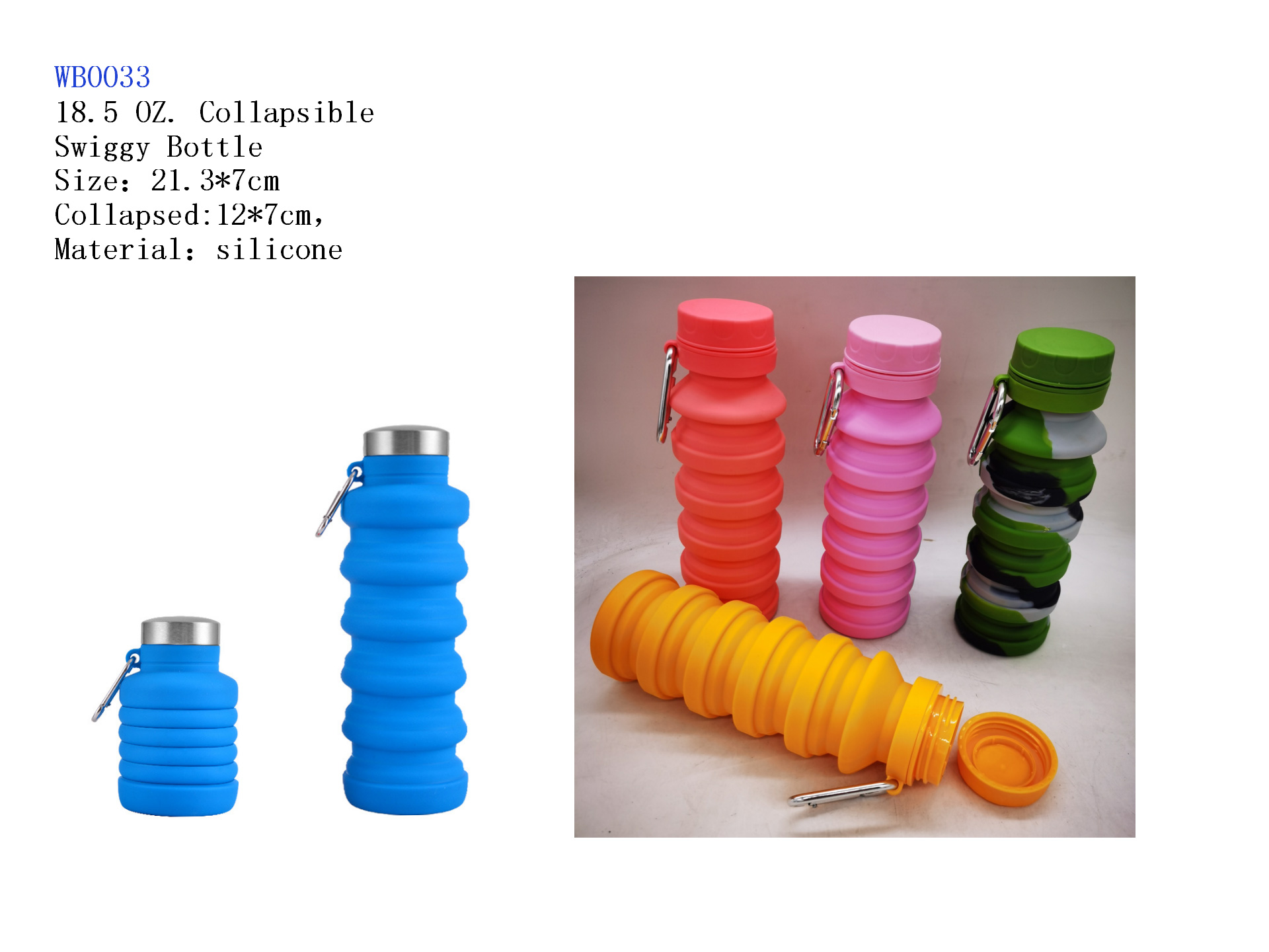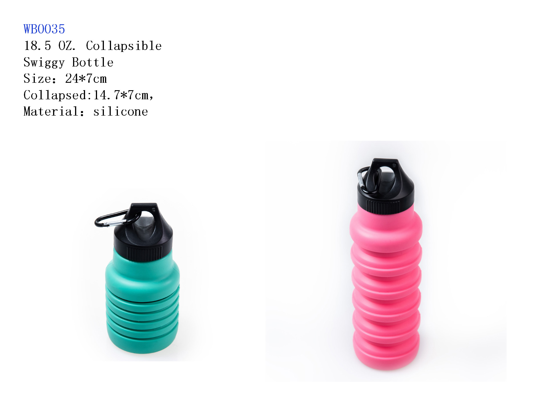 16.5 oZ. Collapsible Swiggy Bottle With Carabiner