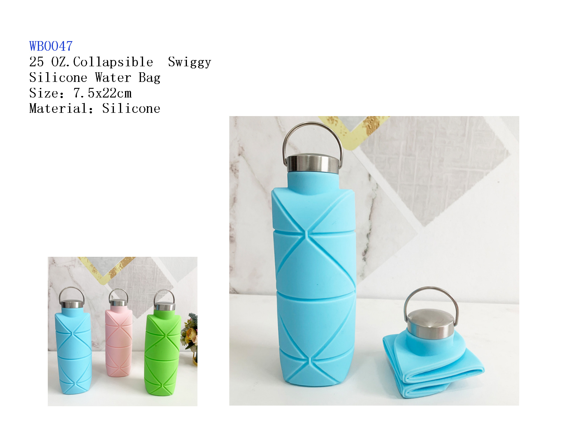 25 oZ. Collapsible Swiggy Silicone Water Bag