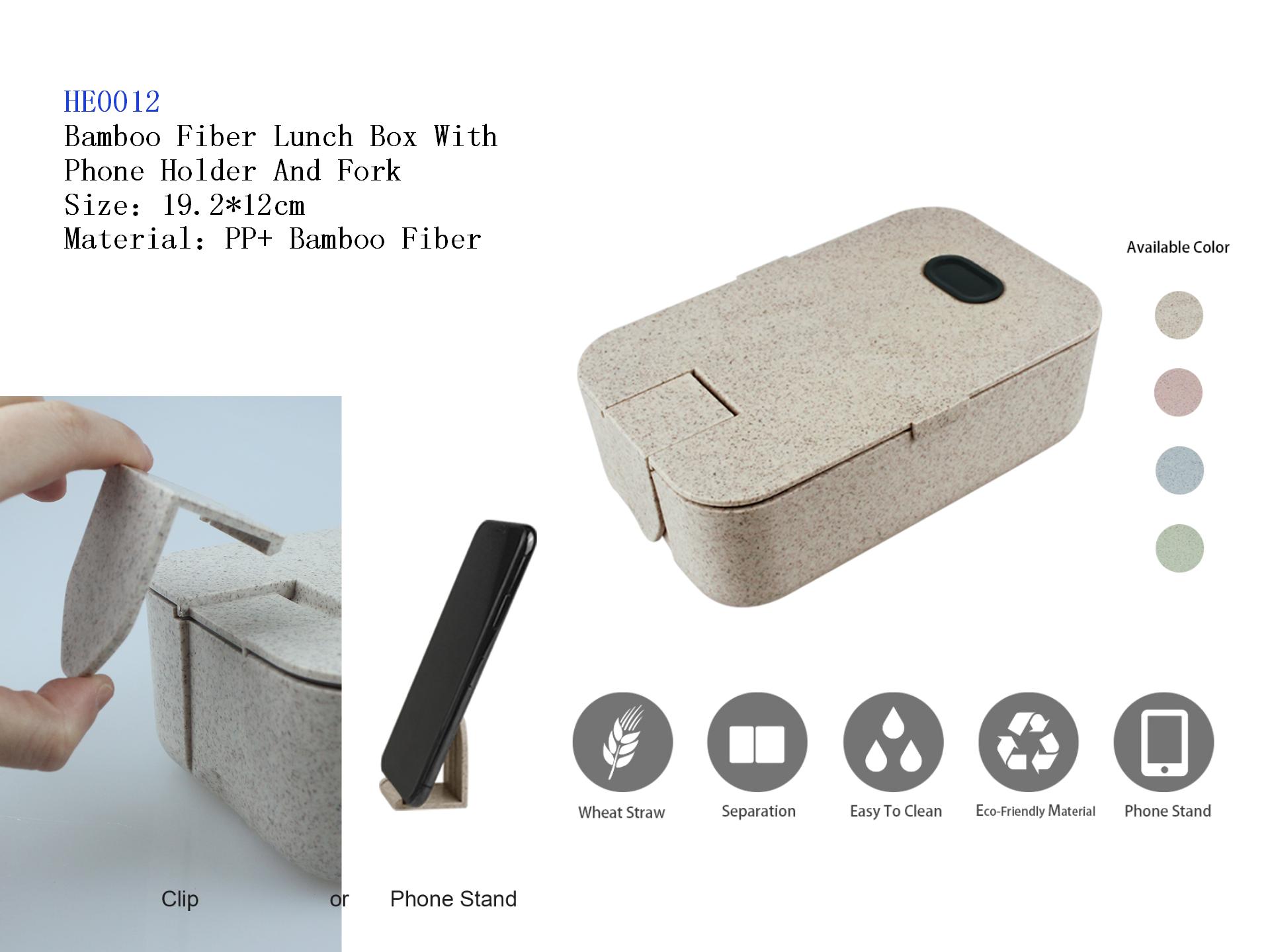 Bamboo Fiber Lunch Box With Phone Holder And Fork