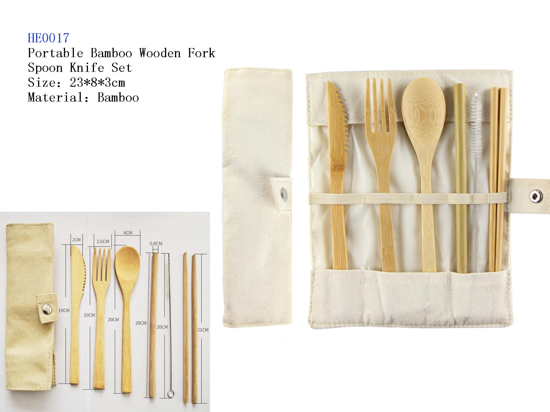 > Portable Bamboo Wooden Fork Spoon Knife Set