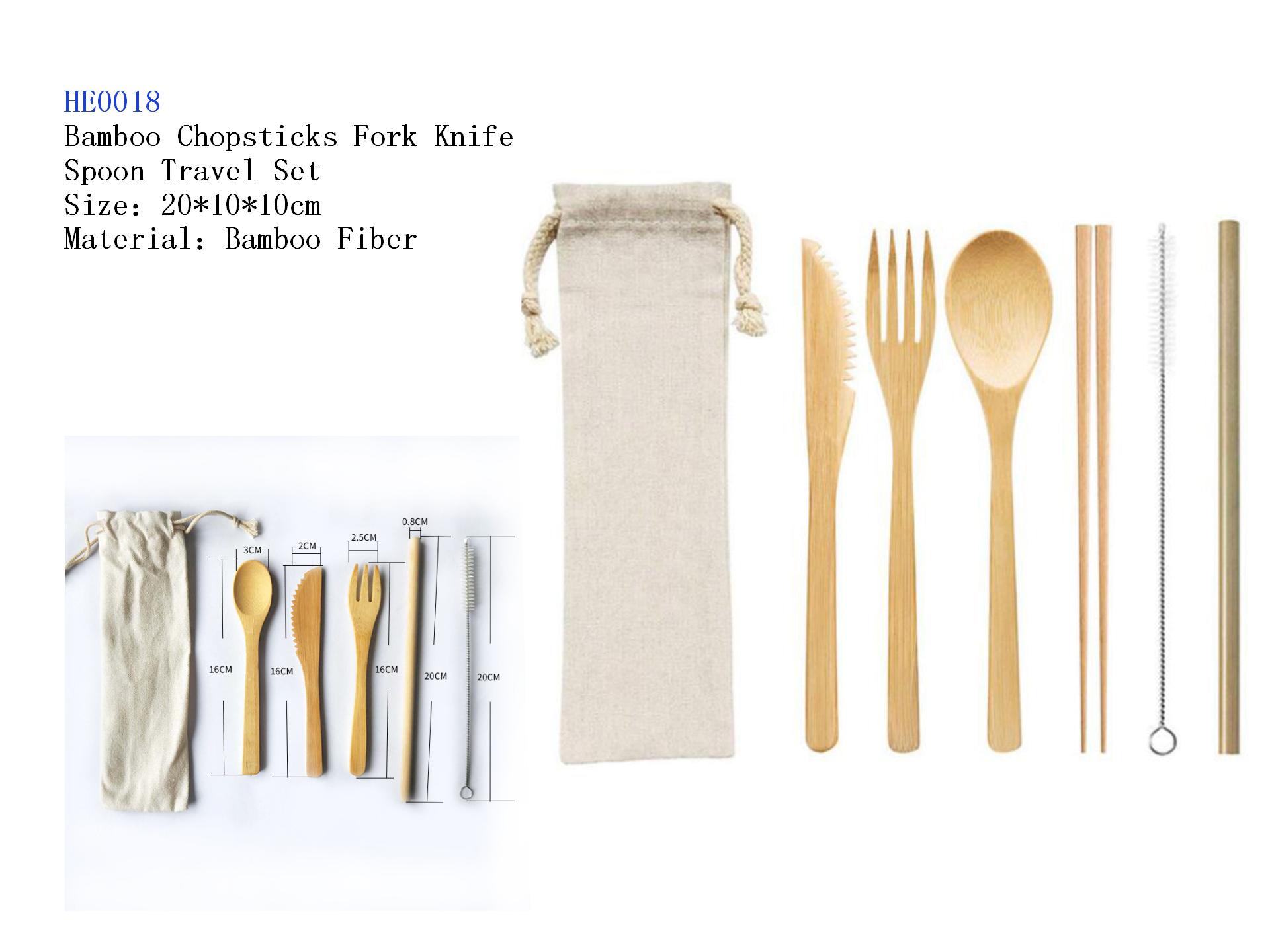 Bamboo Chopsticks Fork Knife Spoon Travel Set