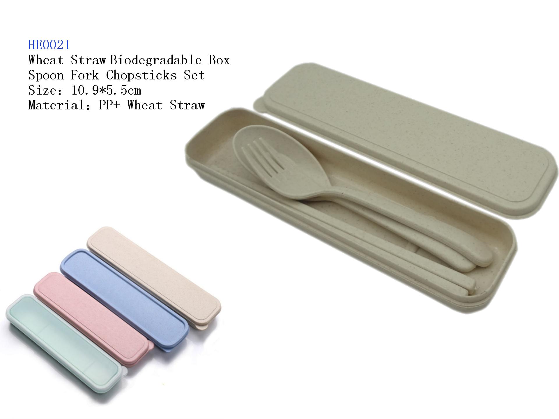 Wheat Straw Biodegradable Box Spoon Fork Chopsticks Set