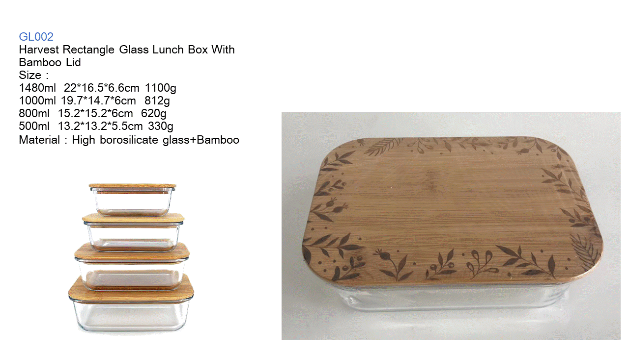 Harvest Rectangle Glass Lunch Box With Bamboo Lid